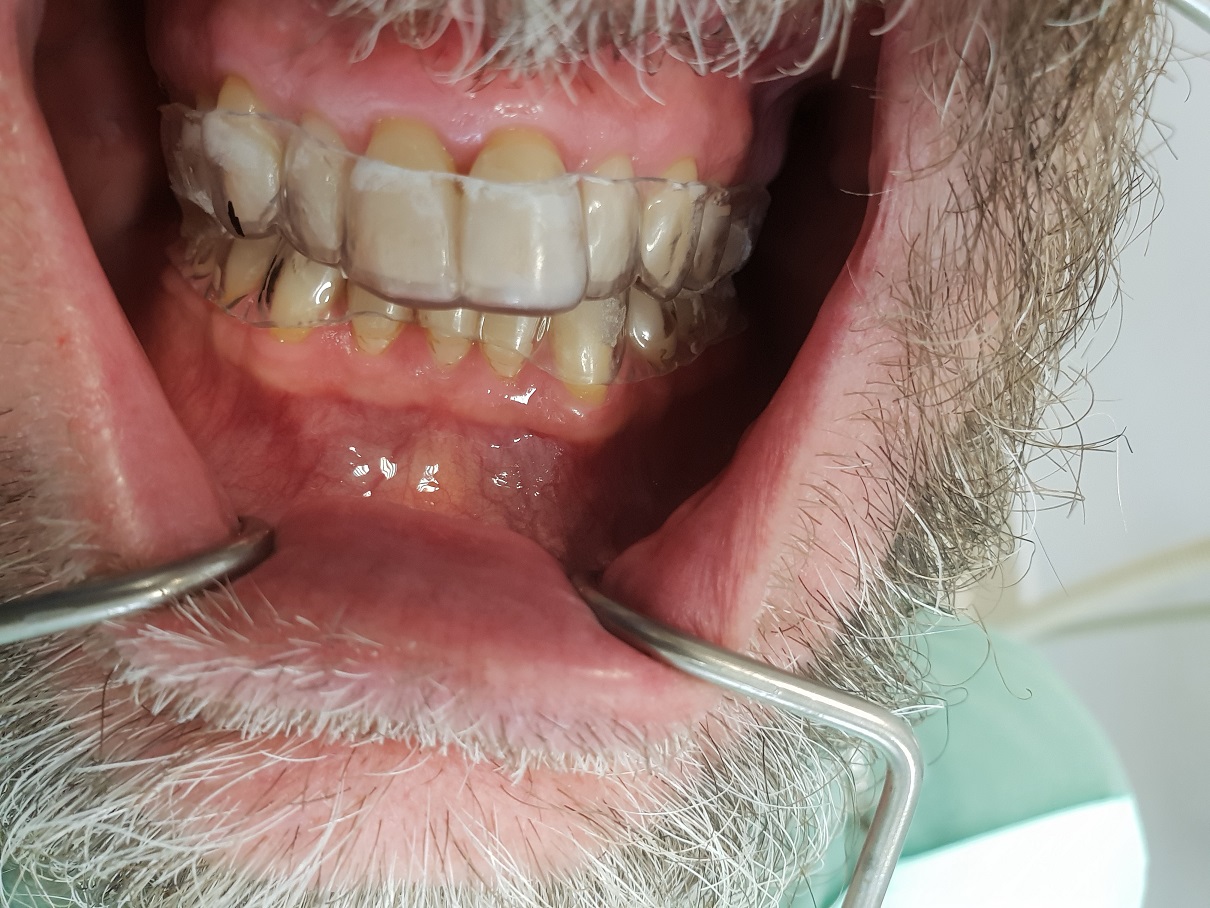 Ο ασθενής έχασε ένα δόντι και προσήλθε για να κλείσουμε το κενό που προέκυψε, αλλά και να αποκαταστήσουμε και τις τερηδόνες, με τον πλέον άμεσο τρόπο γιατί είχε επείγουσα κοινωνική υποχρέωση. Με ρητίνη το κενό διαμοιράσθηκε στα δύο δόντια και έτσι ο ασθενής σε 40 λεπτά μπόρεσε να είναι αισθητικά και λειτουργικά άρτιος (εικόνες )