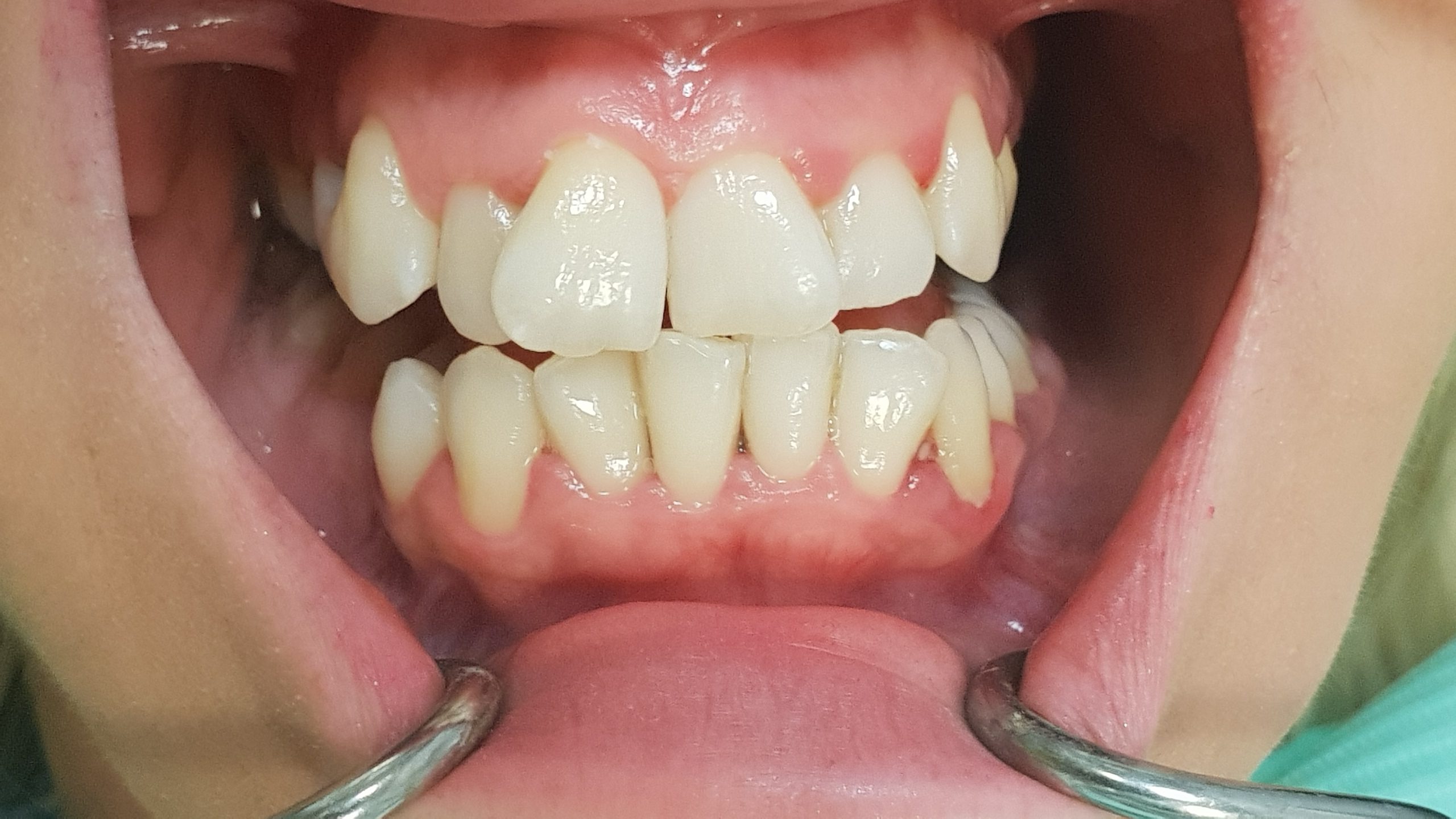Όπως φαίνεται στις δύο πρώτες ,η ασθενής είχε σοβαρό πρόβλημα συνωστισμού των άνω πρόσθιων δοντιών.