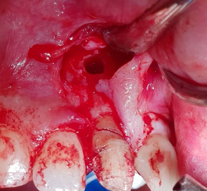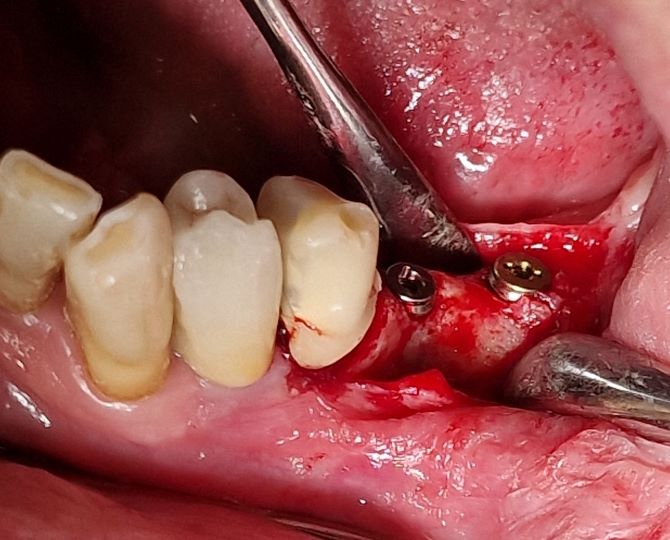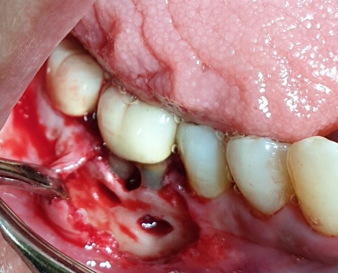 Διάσωση καταδικασμένου δοντιού με ακρορριζεκτομή με GBR (οστική αναγέννηση με οστικό υποκατάστατο και μεμβράνη)