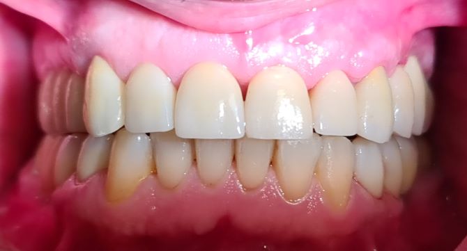 Ολική αποκατάσταση με στεφάνες ζιρκονίας στα φυσικά δόντια κ εμφυτεύματα στα ελείποντα